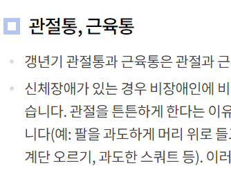 걷기, 수영, 댄스스포츠, 에어로빅 같은 운동이 도움이 됨.