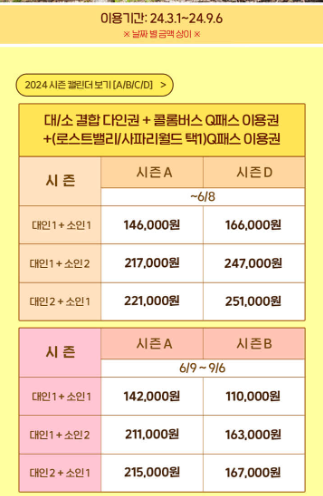에버랜드에서는 가족 큐패스 패키지를 판매하고 있는데요.
